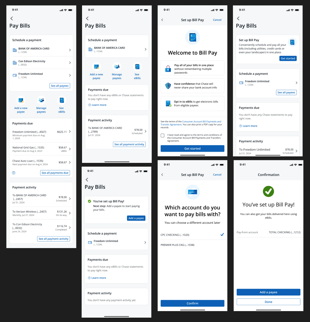 Most recently I’ve had the privilege to work on some complex experiences that focuses on Consumer Banking Payments for J.P. Morgan Chase.